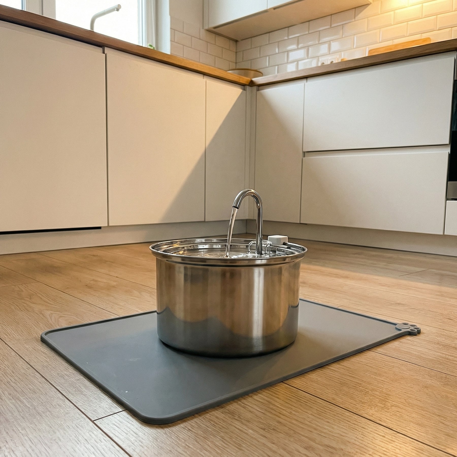 Helps catch drips, reduce movement, and protect floors — without changing how the fountain looks or feels.